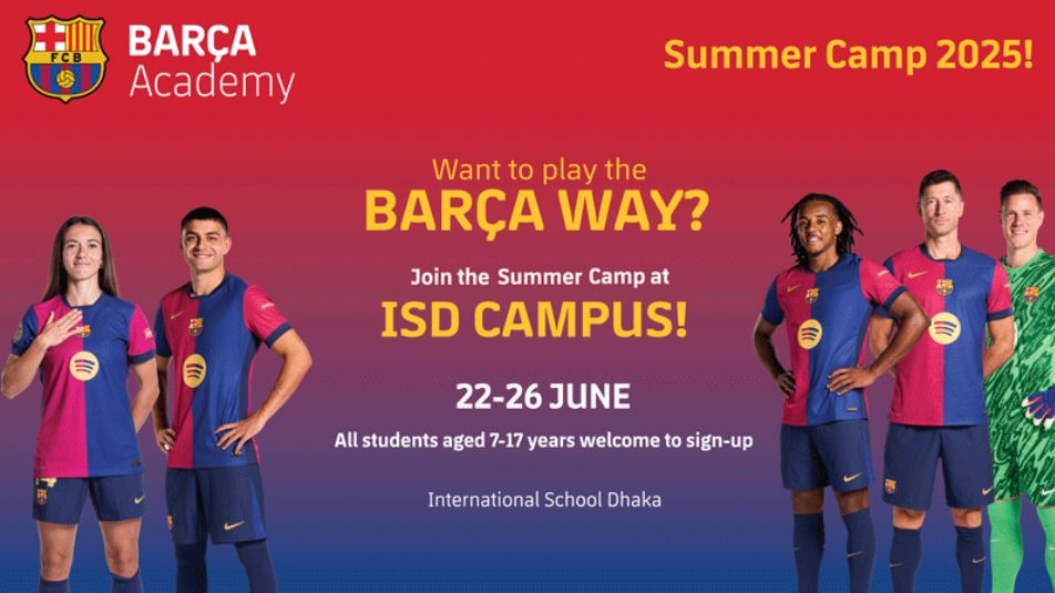ঢাকায় দ্বিতীয়বারের মতো আয়োজিত হতে যাচ্ছে বার্সেলোনা একাডেমির সামার সকার ক্যাম্প। গত বছর শিক্ষার্থী ও ক্রীড়াপ্রেমীদের থেকে ভালো সাড়া পাওয়ায় এবারও ঢাকায় বসতে যাওয়া ক্যাম্পটি হবে ইন্টারন্যাশনাল স্কুল ঢাকা’র (আইএসডি) আয়োজনে।